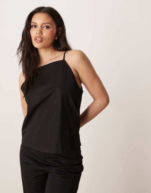 Mango - Sort cami-top med firkantet hals i hørblanding