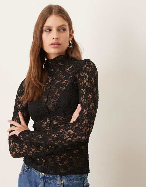 Mango - Sort højhalset top i blondemateriale