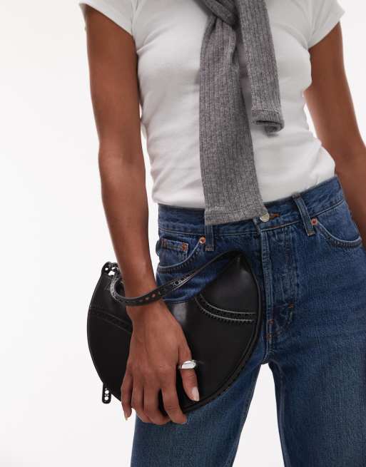 Mango - Sort taske med rund form og syningsdetaljer foran