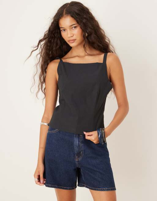 Mango - Sort top med firkantet hals og sløjfe på ryggen