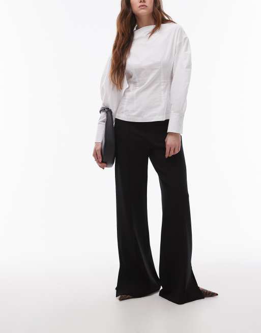 Mango - Sorte bukser med lige ben og sømdetaljer foran i jersey
