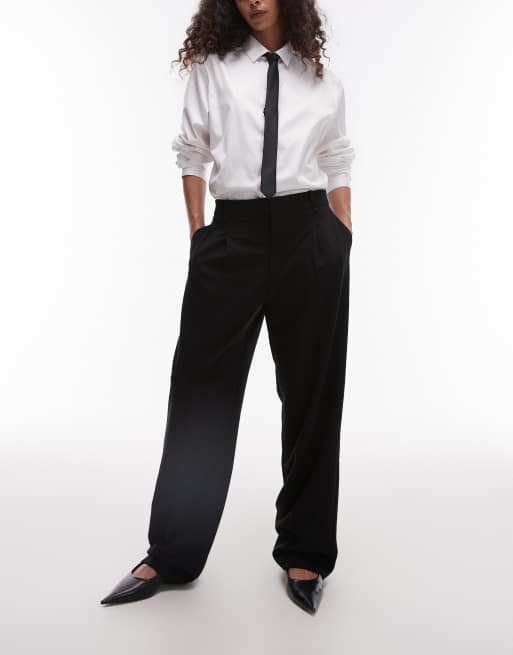 Mango - Sorte og skræddersyede bukser med lige ben og pintucks