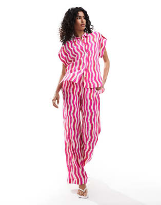 Mango - Sæt med bukser og skjorte med pink bølgestriber