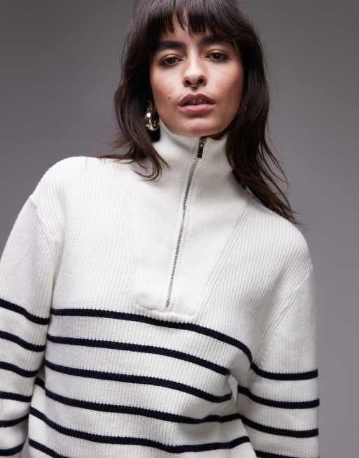 Mango - Stribet trøje med lynlås i halsen i hvid