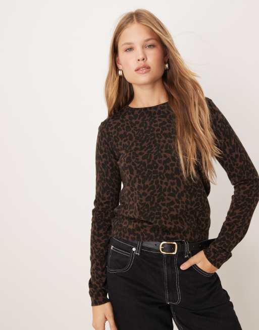 Mango - Top i fin strik med mørkebrunt leopardprint