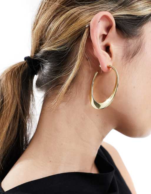 Mango - Tynde og buede hoop-øreringe i guldfarve
