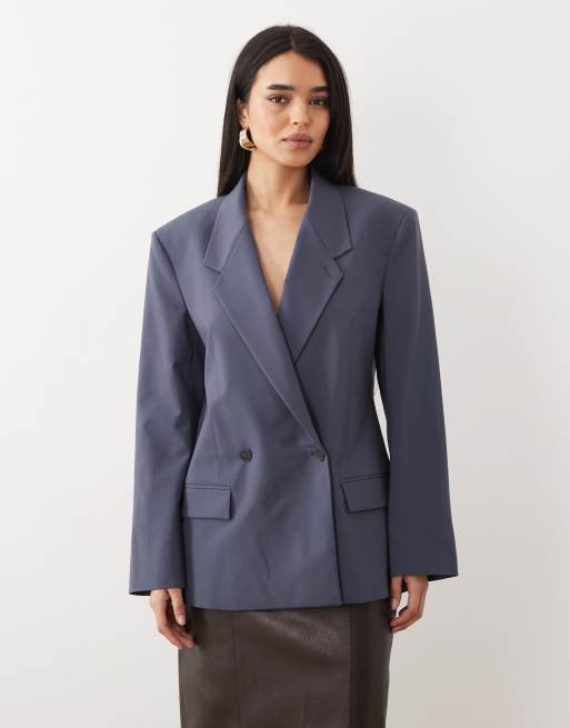 Mango - Uma - Blå blazer med skulderpuder - Del af sæt