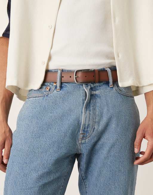 Mango - Vasket brunt bælte i læder med kurvet spænde