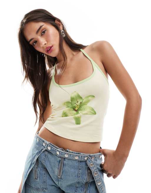 Mango x Siedres - Hvid top med halterneck og blomsterprint