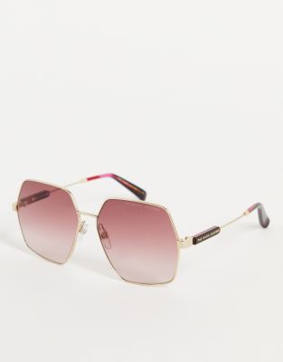 Marc Jacobs - Sekskantede solbriller i guldfarve og lyserød