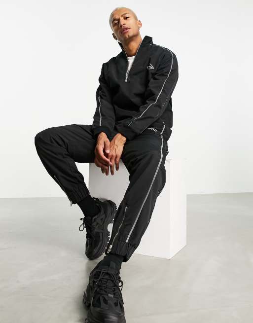 Mennace - Sorte joggingbukser i nylon med reflekterende kantstriber - Del af sæt