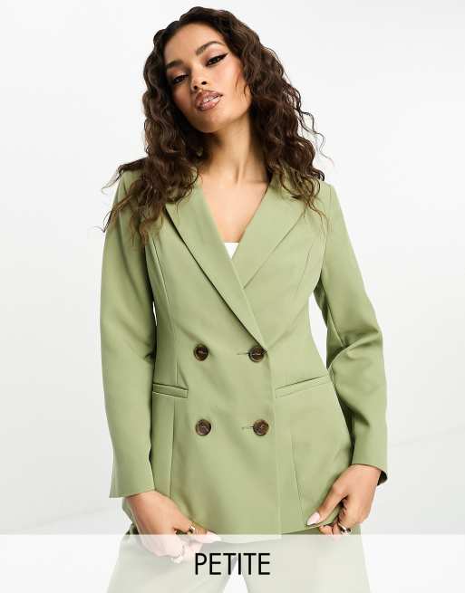 Miss Selfridge Petite - Oversized, dobbeltradet blazer i kakigrøn