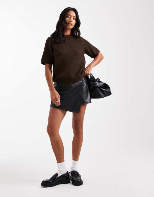 Miss Selfridge Petite - Sort skort i imiteret læder
