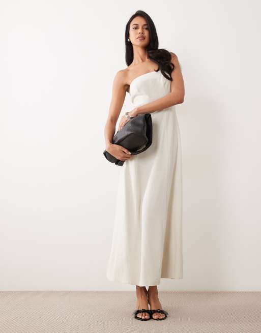 Miss Selfridge - Beige bandeau-maxikjole i hørlook