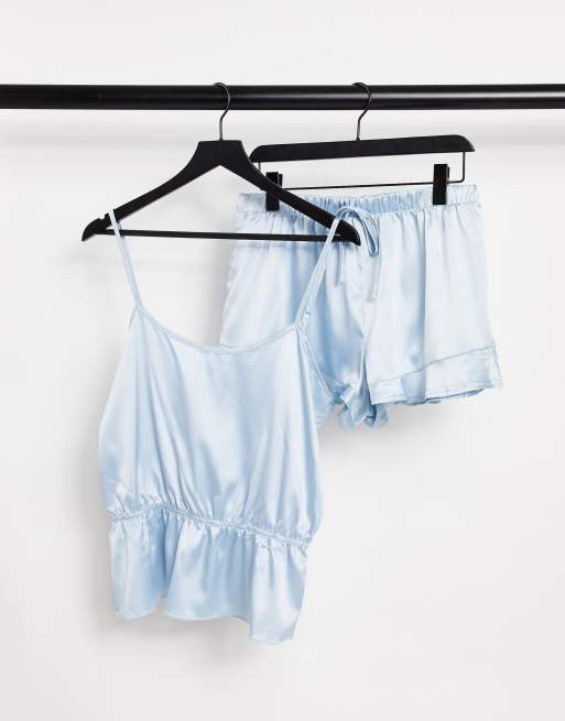 Miss Selfridge - Blåt sæt med cami-top og shorts i satin