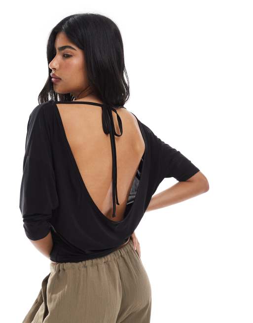 Miss Selfridge - Blød top med åben ryg og flagermusærmer
