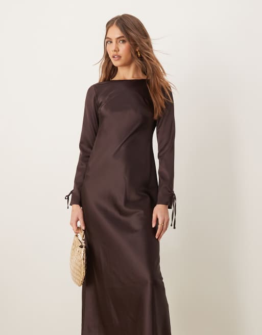 Miss Selfridge - Brun maxikjole med lange ærmer