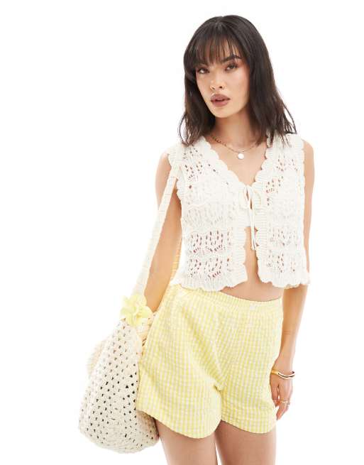 Miss Selfridge - Cremefarvet hæklet top uden ærmer