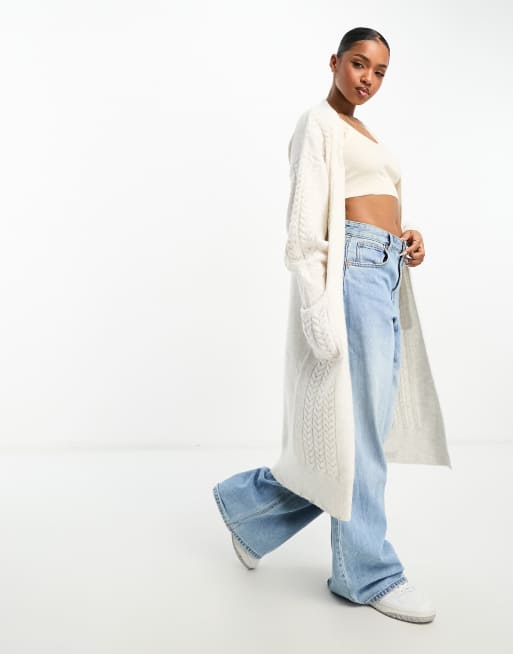 Miss Selfridge - Cremehvid coatigan i chunky kabelstrik