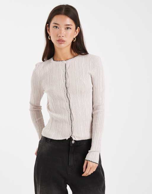 Miss Selfridge - Cremehvid ribstrikket cardigan med tungesting