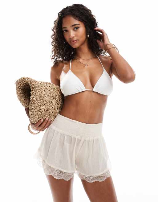 Miss Selfridge - Cremehvide strandshorts med blondedetaljer