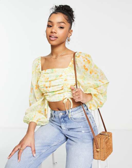 Miss Selfridge - Croptop i chiffon med sløret blomstermønster
