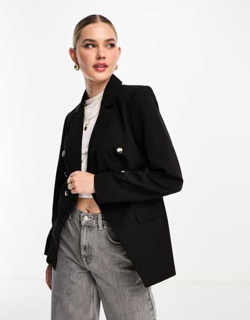 Miss Selfridge - Dobbeltradet militærblazer i sort