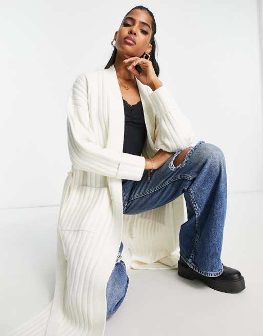 Miss Selfridge - Hvid longline-cardigan med bælte