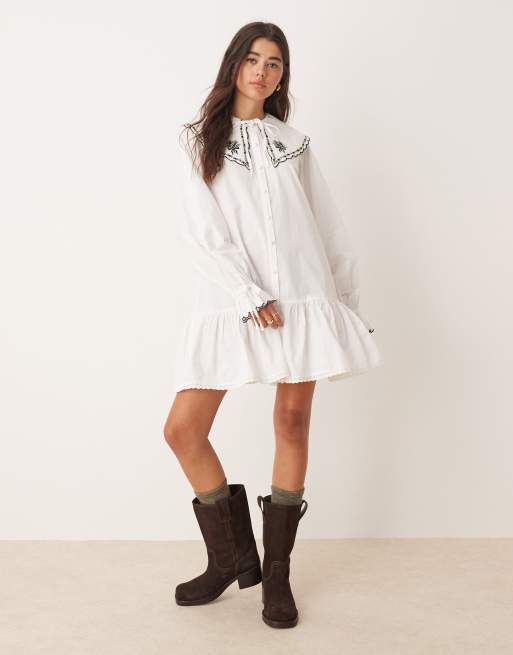 Miss Selfridge - Hvid minikjoler med krave med broderier