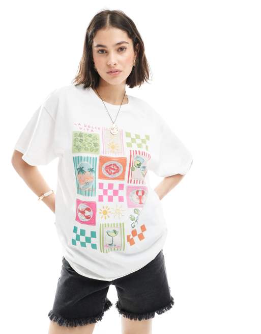 Miss Selfridge - Hvid T-shirt med grafisk sommerprint i postkortstil på brystet