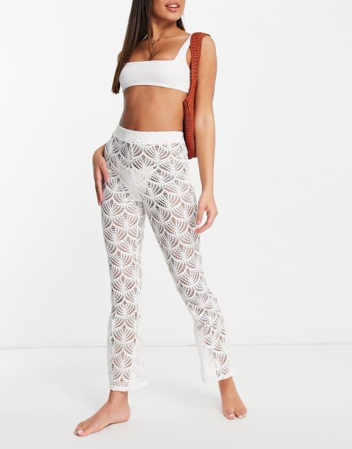 Miss Selfridge - Hvide strandbukser med svaj i blondestof