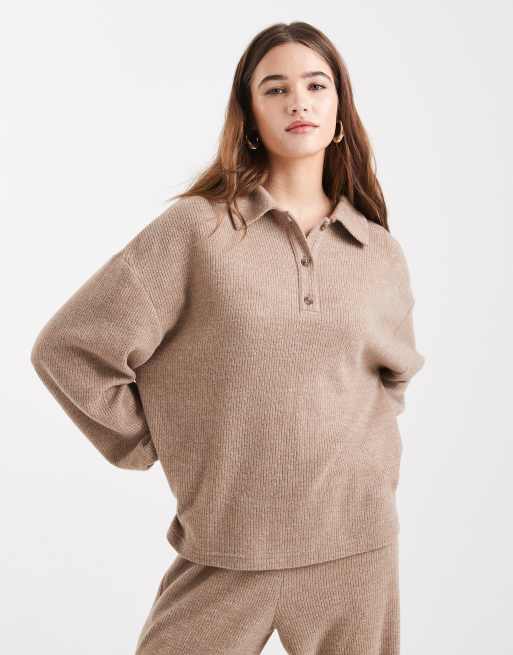 Miss Selfridge - Kamelbrun børstet sweatshirt med krave - Del af sæt