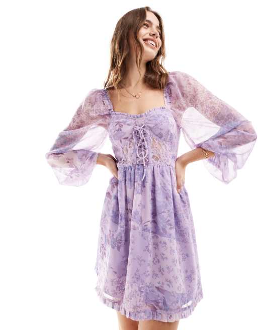 Miss Selfridge - Korset-minikjole i chiffon med snører og patchwork-blomstermønster