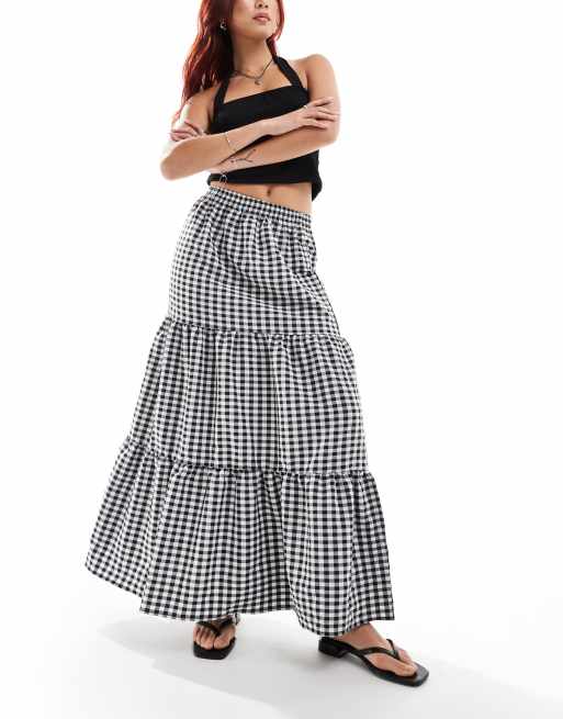 Miss Selfridge - Lagdelt maxinederdel med gingham-tern