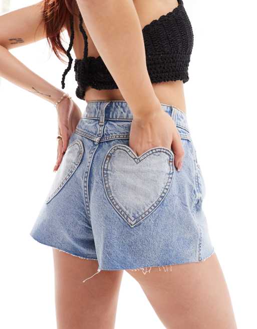 Miss Selfridge - Lyseblå denimshorts med hjerteformet lomme