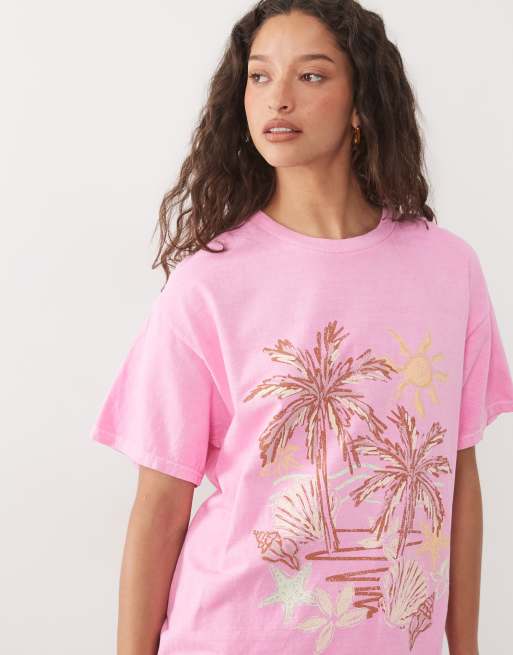 Miss Selfridge - Lyserød oversized T-shirt med strandprint