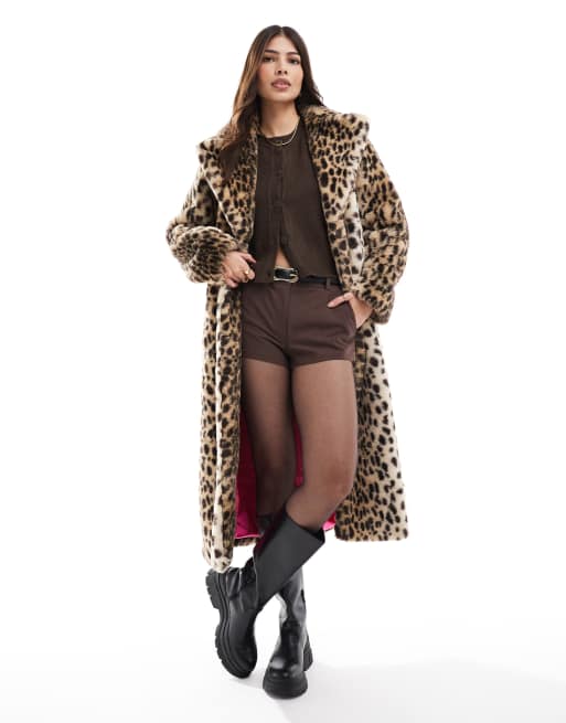 Miss Selfridge - Maxifrakke med leopardprint i imiteret pels