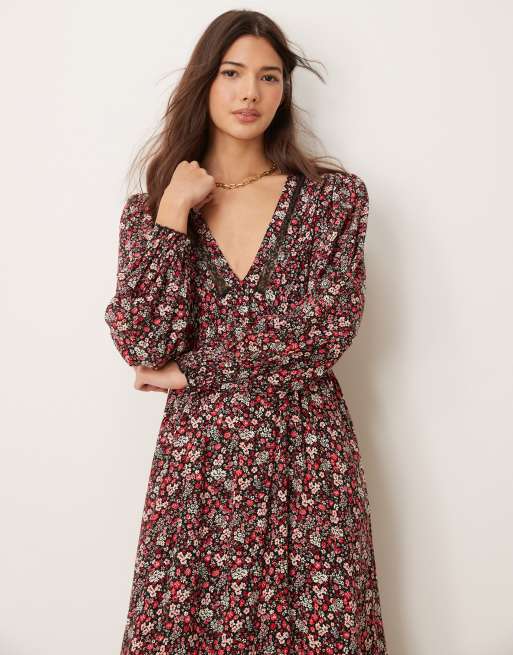 Miss Selfridge - Maxikjole med detaljer og multifarvet print