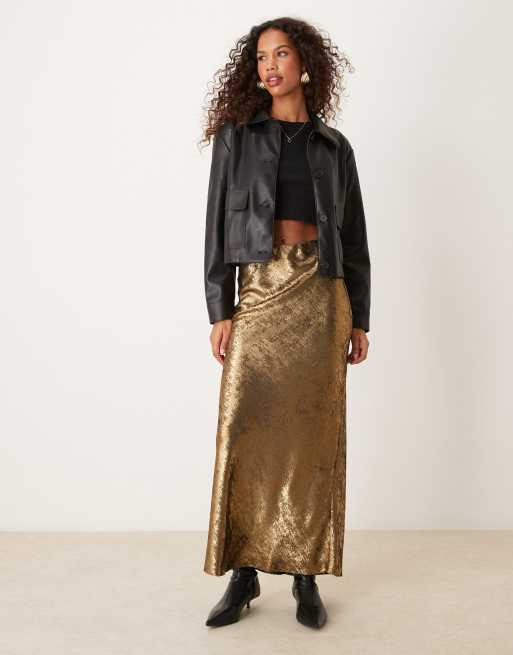 Miss Selfridge - Metallisk guldfarvet maxinederdel