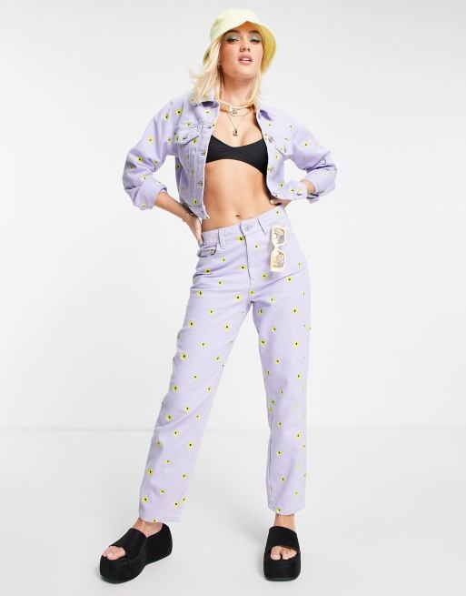 Miss Selfridge - Mom-jeans med solsikkebroderi