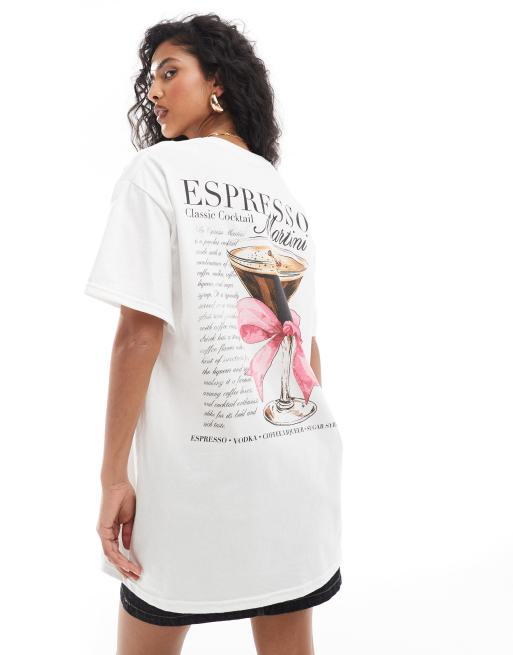 Miss Selfridge - Oversized T-shirt med 'Espresso Martini'-print i hvid