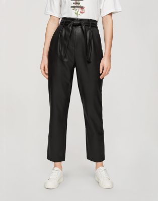 Miss Selfridge - Paperbag-bukser i sort imiteret læder