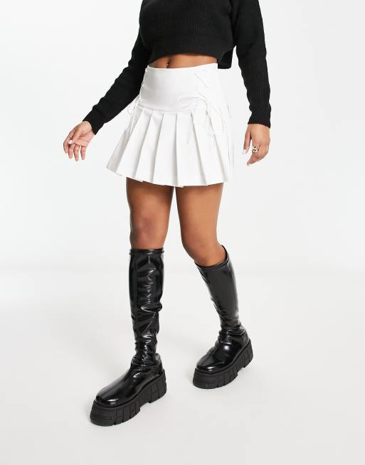 Miss Selfridge - Plisseret mininederdel med snøredetaljer i kilt-stil i hvid