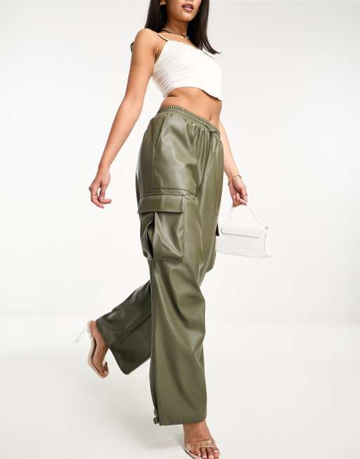Miss Selfridge - Posede cargobukser i kakigrønt, imiteret læder