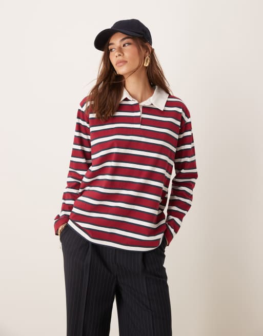 Miss Selfridge - Rød langærmet rugby-top med striber