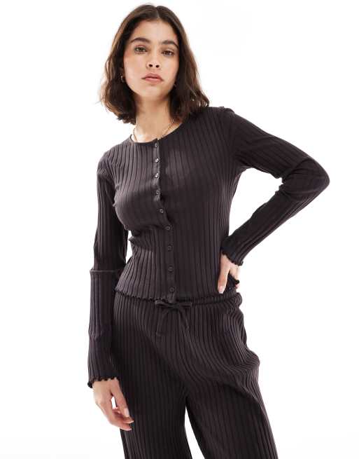 Miss Selfridge - Ribstrikket chokoladebrun cardigan