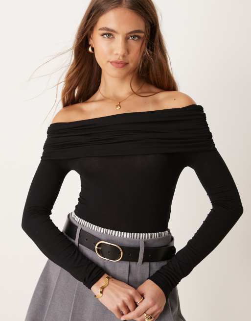 Miss Selfridge - Sort Bardot-bodystocking med lange ærmer
