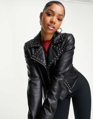 Miss Selfridge - Sort bikerjakke med nitter i imiteret læder