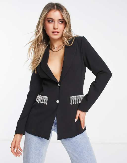 Miss Selfridge - Sort blazer med rhinstens-kant