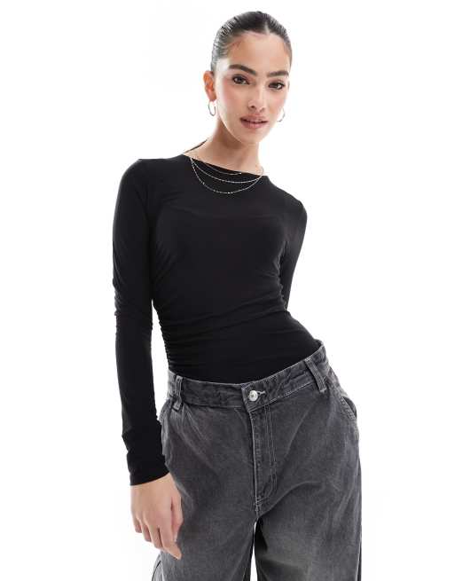 Miss Selfridge - Sort blød bodystocking med rynker i siden